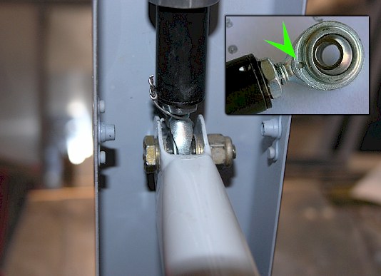 Here's where I deviated from the plans (again). I tried to tie wire the flap motor rod to the bolt as stated in the instructions. But, when I played with moving the rod up and down by running the motor, the wire bent back and forth. I knew that after only a few sessions of applying the flaps, the wire would eventually break. So, in a previous building session, I drilled a small hole into the eye bolt (or whatever the hell this part is called). Then I tie wired the flap motor rod to the eye bolt. This solved the wire movement issue.